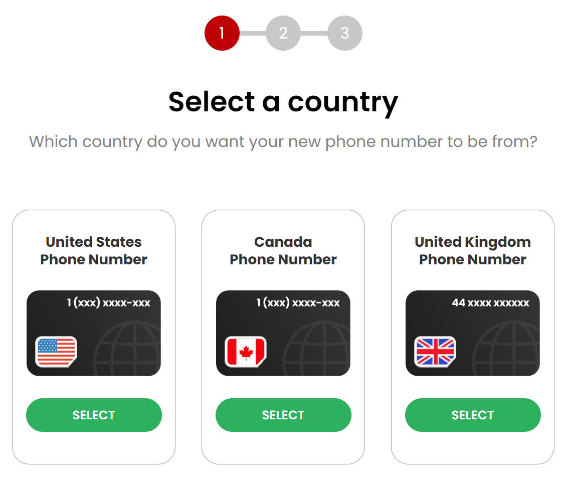 United States, Canada, and United Kingdom numbers are available